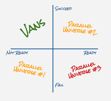Parallel Universe #1: They open early and fail. No harm, no foul. They don’t have a surplus of shoes that they need to unload or wear for the rest of their lives. Not as bad an outcome as bad outcomes go.